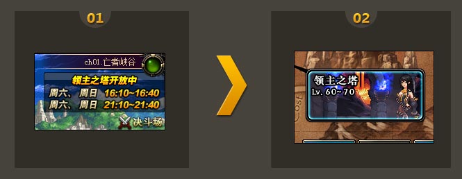 每周开放 4次领主之塔,周六、周日 下午4点10分~ 4点40分, 晚21点 10分~ 21点40分,每次30分钟,每天共1小时。